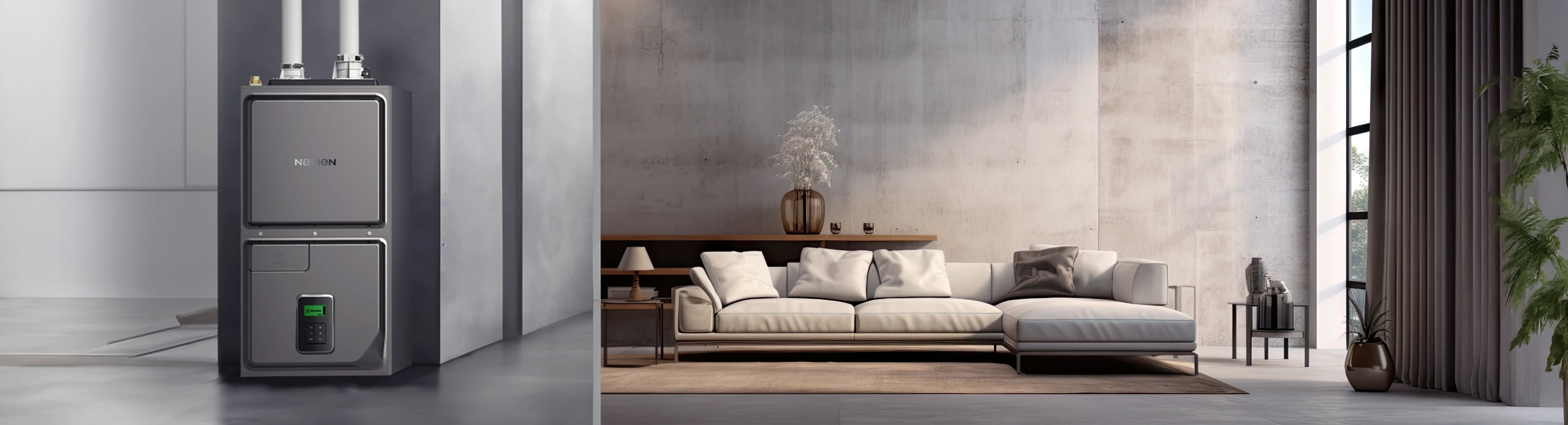 Advanced condensing technology heats the air with hot water, preventing harmful gases from entering the living space.