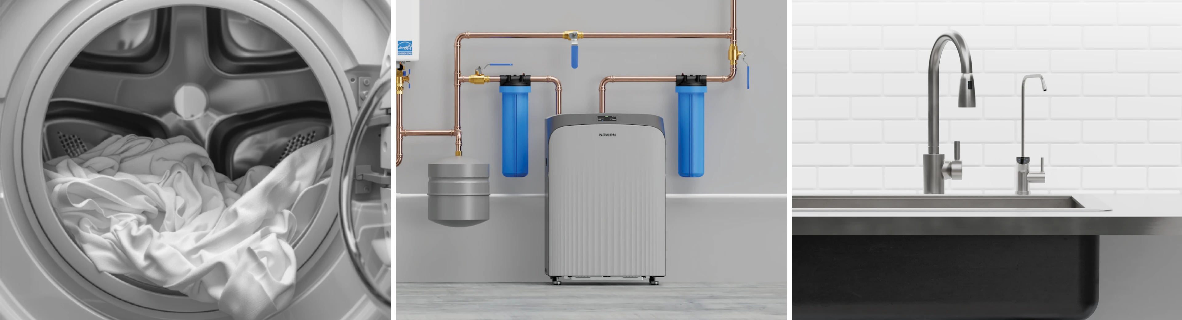 Navien Home Water System manages all the water flowing through your home, from your whole-house supply to every glass of drinking water, making it cleaner and safer for your family.