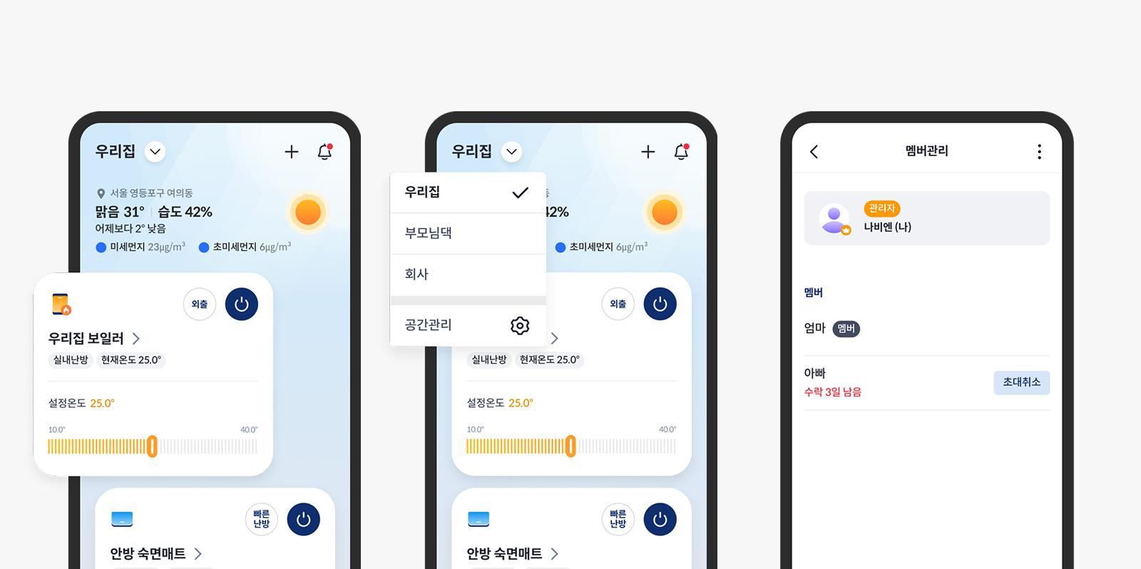 집, 사무실 또는 나만의 공간을 설정해 나비엔 기기를 편리하게 관리할 수 있습니다.