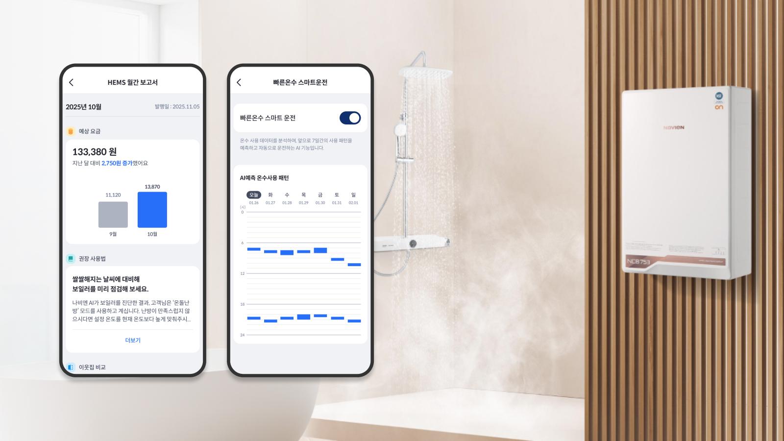 난방과 온수 사용 패턴에 맞춰 자동으로 에너지 사용을 최적화하며,