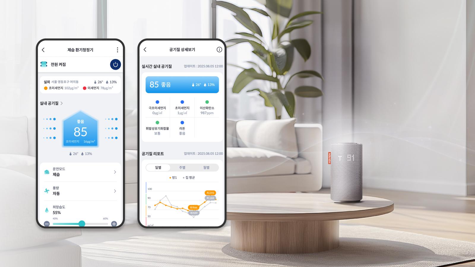 리포트를 통해 사용 현황을 쉽게 확인할 수 있습니다. 스마트한 관리로 쾌적함과 절약을 동시에 누려보세요.