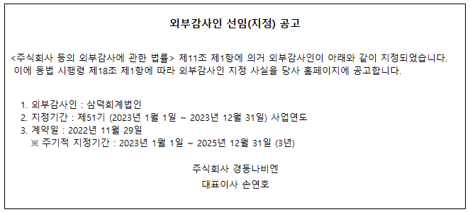 2022 외부감사인 선임(지정) 공고