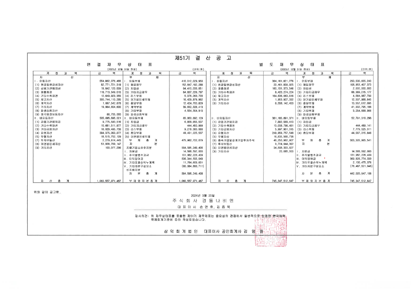 제51기 결산공고