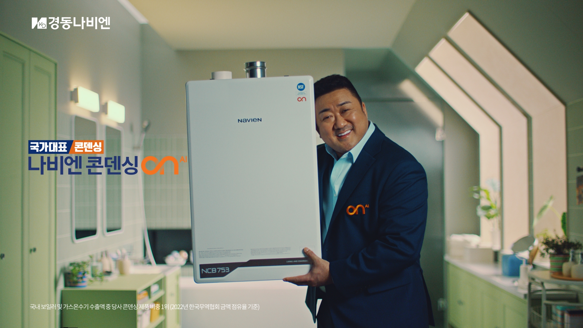 특히 이번에 경동나비엔의 모델로 발탁된 마동석은 카리스마 넘치는 ‘해결사’ 이미지와 특유의 ‘귀여움’을 동시에 뽐내며 광고에 매력을 더한다. 온수가 나올 때까지 기다리거나 변덕스러운 온수 온도로 불편함을 겪는 상황을 해결하기 위해 등장한 마동석은 새로운 온수의 세계로 고객을 이끌며, 멋진 포즈로 “온수, 나비엔 기술을 써봐”라는 해결책을 제시한다. 뒤 이어 고객의 불편을 해소하는 ‘압도적으로 빠른 온수 속도’와 ‘동시에 써도 일정한 온수 온도’ 등 ‘나비엔 콘덴싱 ON AI’의 차별화된 장점이 소개된다. 마지막 장면에서 보일러를 힘차게 들고, 귀엽게 보일러 문을 닫고 들어가는 두 가지 버전의 마동석의 모습을 통해 각기 다른 매력을 선보이는 점도 눈길을 끈다.