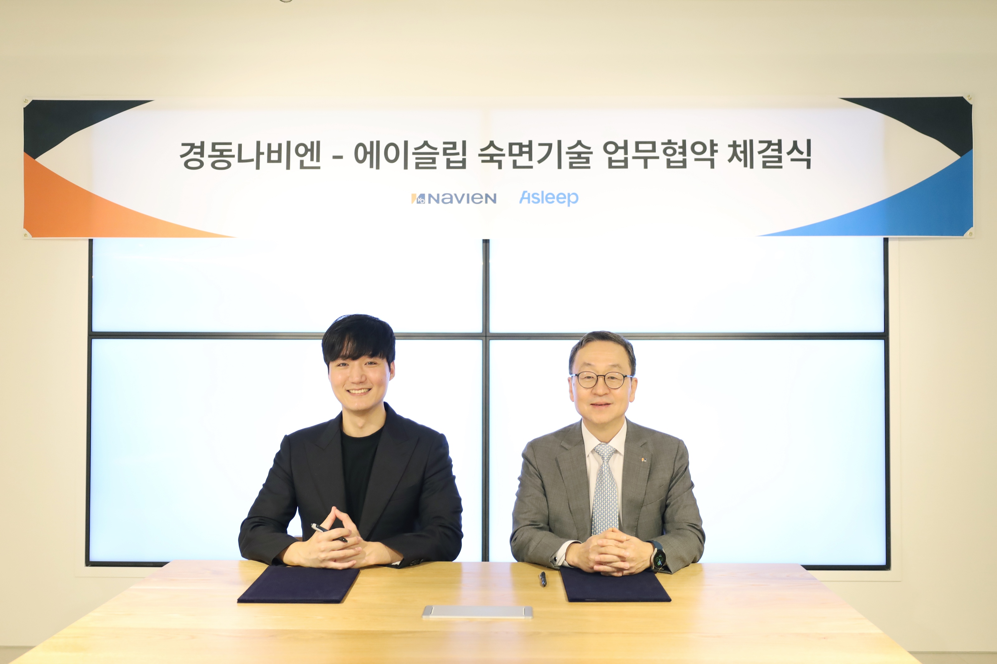 경동나비엔이 인공지능(AI) 수면 분석 플랫폼 기업 에이슬립(Asleep)과 업무협약을 체결하고 새로운 숙면기술확보에 나선다. 10월 31일(화)에 진행된 업무협약식에는 경동나비엔 김용범 영업마케팅 총괄임원과 에이슬립 이동헌 대표가 참석해 국내 ‘슬립테크’ 시장의 저변 확대를 위한 협업을 약속했다.